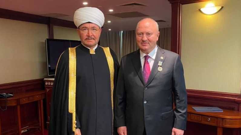 Председатель Совета муфтиев России и Духовного управления мусульман РФ Муфтий Шейх Равиль Гайнутдин наградил заместителя Премьер-министра Республики Татарстан - Полномочного Представителя РТ в РФ Равиля Каллимуловича Ахметшина высшей наградой мусульман России ОРДЕНОМ ПОЧЁТА «АЛЬ ФАХР».