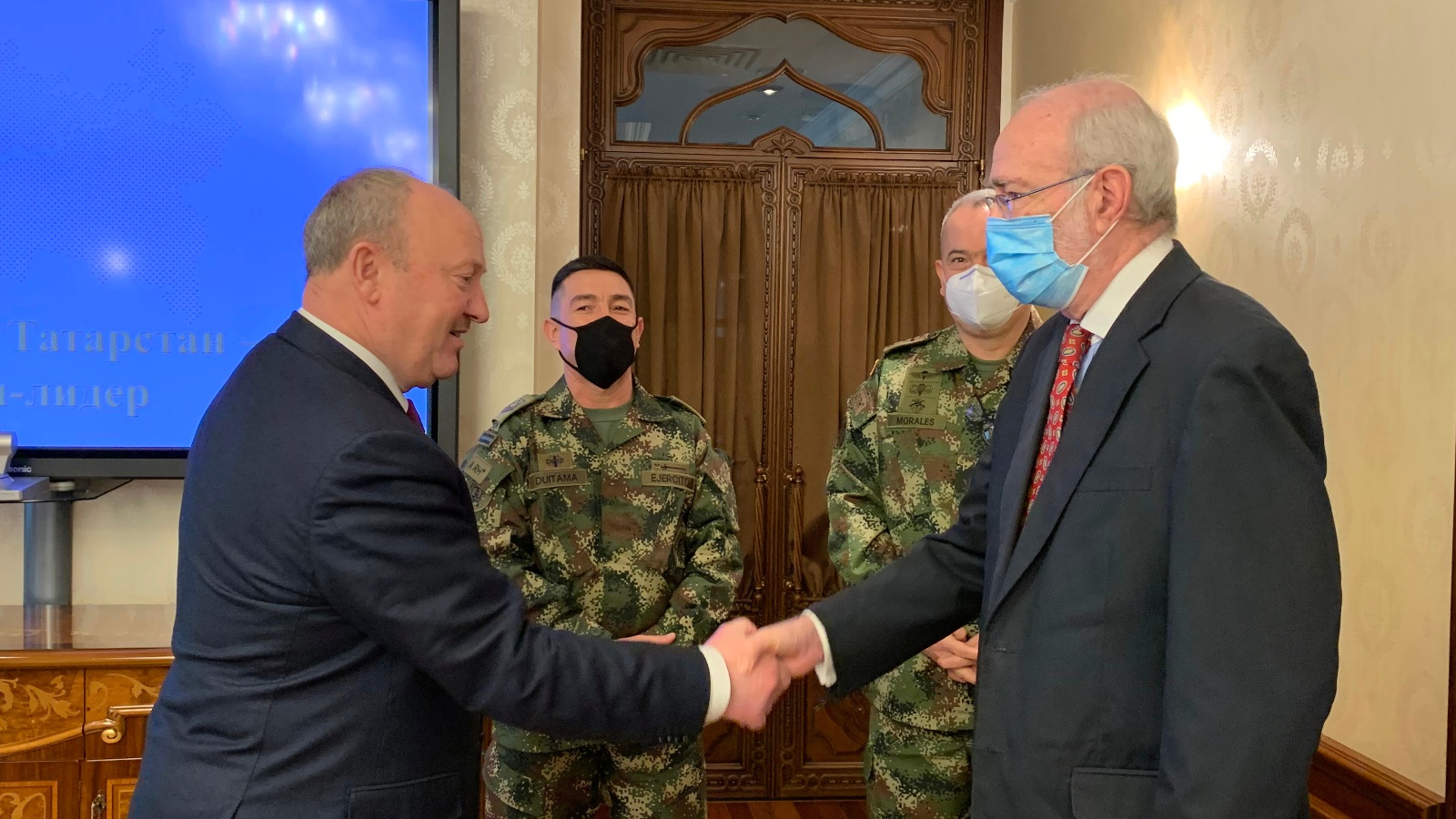 Встреча прошла в Полномочном представительстве Татарстана. В ней также приняли участие со стороны Колумбии - военный атташе полковник Рудольфо Моралес Франко и сержант Хайро Мануэль Дуитама Сендалес, со стороны Татарстана - заместитель Полпреда по международным и экономическим вопросам Михаил Михалин, генеральный директор «ACI Group» Денис Хакимов.
