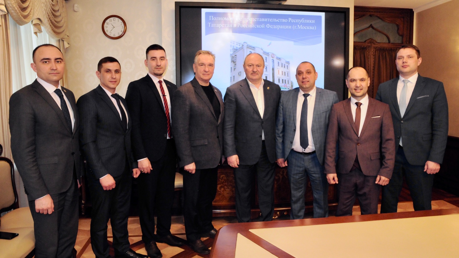 Равиль Калимуллович провел гостям презентацию о деятельности представительства. Рассказал про его задачи и функции, о татарстанцах, проживающих в Москве, и мероприятиях, которые направлены на объединение земляков в столице.