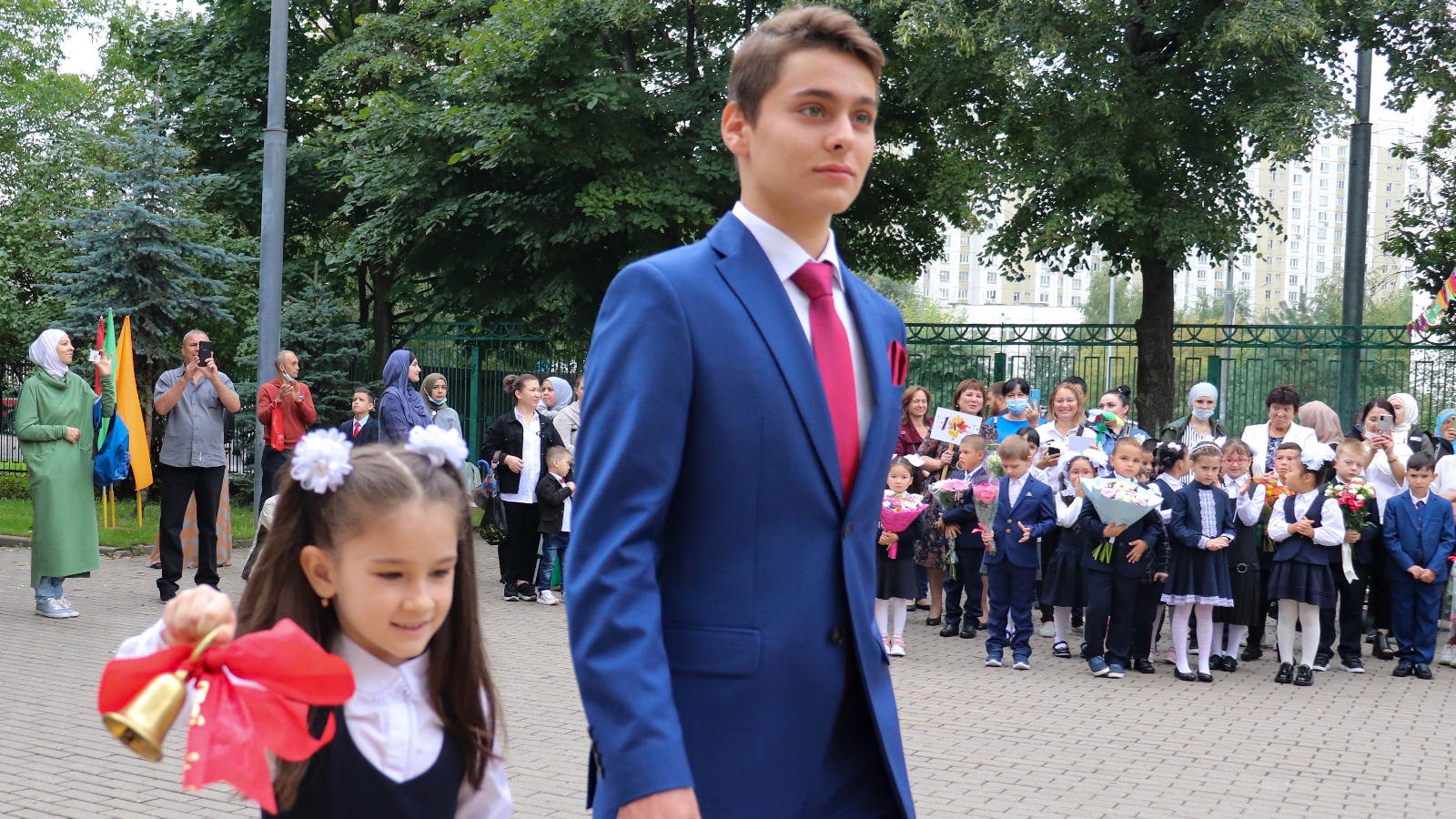 С новым учебным годом поздравил также заместитель Председателя Совета Муфтиев России Рушан хазрат Аббясов. Он является председателем управляющего совета школы, где обучаются трое его детей. Младший сын Рушана Аббясова сегодня пошел в первый класс.
