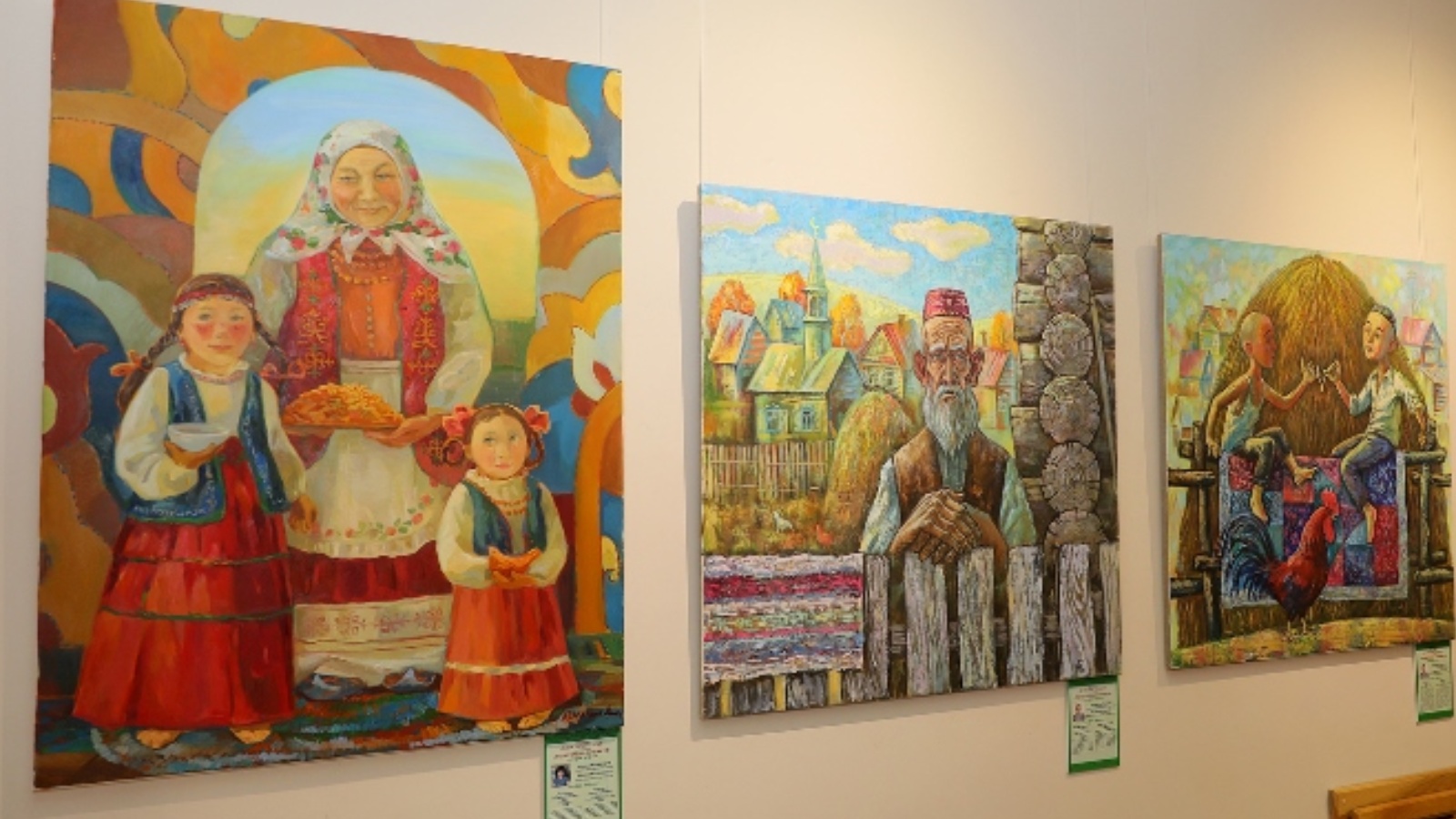 Выставку украшают произведения изобразительного искусства – более сотни работ современных художников России и других стран, появившихся в результате международных арт-симпозиумов в Елабуге. Они изображают обряды и обычаи татар, сюжеты из народного эпоса, воспоминания о детстве и малой родине, достопримечательности Татарстана.