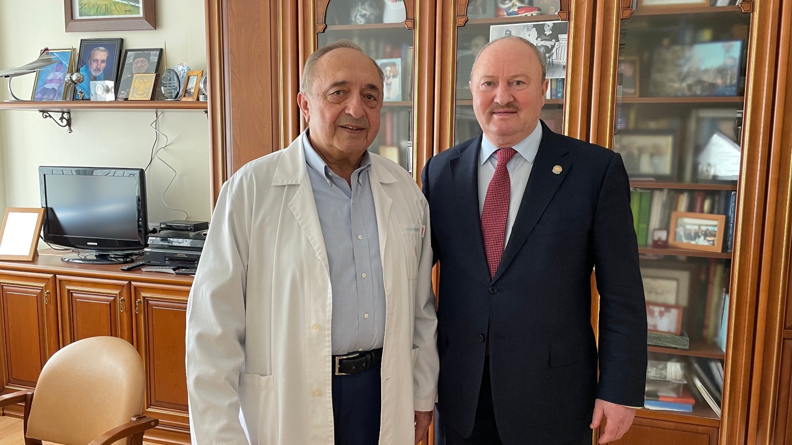 Заместитель Премьер-министра Республики Татарстан - Полномочный представитель РТ в РФ Равиль Ахметшин также посетил именитого доктора в Институте имени А.Л. Мясникова и поздравил с днем рождения, передал памятные подарки, а также татарскую выпечку, приготовленную поварами Полпредства Татарстана.