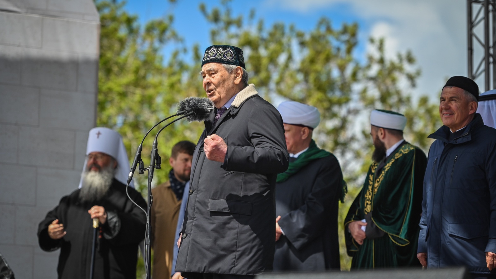 Также с 1100-летием гостей праздника поздравили председатель ЦДУМ России, верховный муфтий России Талгат Таджуддин, глава Духовного управления мусульман РФ Равиль Гайнутдин, председатель Духовного собрания мусульман России Альбир Крганов, председатель Координационного центра мусульман Северного Кавказа Исмаил хаджи Бердиев, муфтий Татарстана, председатель ДУМ РТ Камиль Самигуллин и митрополит Казанский и Татарстанский Кирилл.